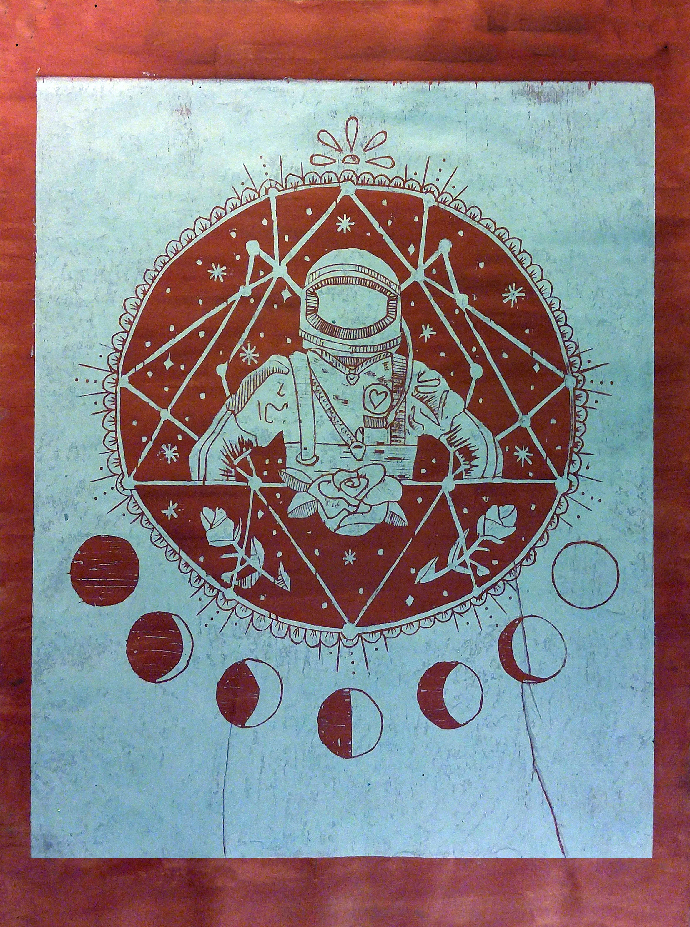I created this imagery from a mixed media magazine collage and translated it into different types of prints.